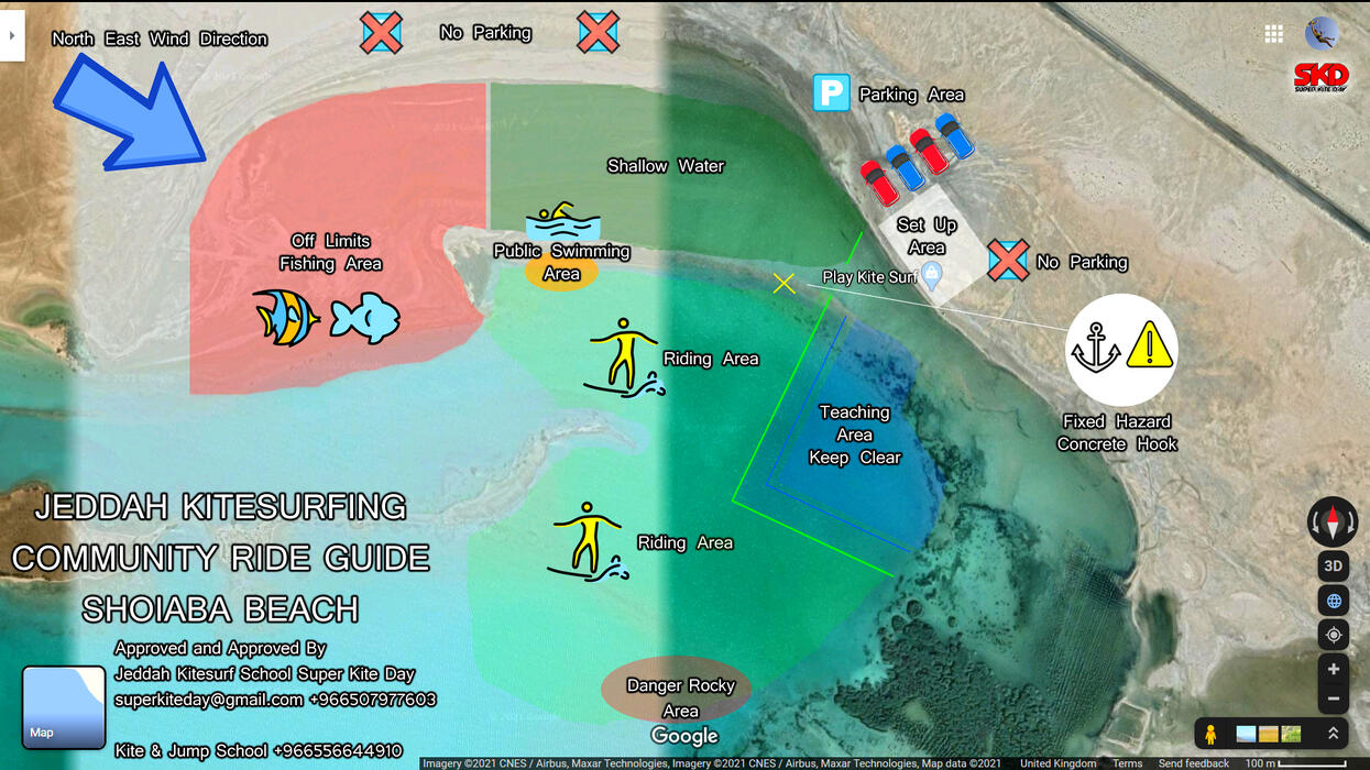 Learn in one of the safest kitesurfing locations, Shoiaba beach has unique geography, it's an inland lagoon that works in all wind directions. There are minimal hazards above and below the water. No coral reef or dangerous Red Sea life as the lagoon is more salty than the sea giving it an amazing blue colour. It has fantastic flat waters and shallow areas to learn, with deep enough areas to kite foil. Beautiful natural features like the mangrove trees make it a wonderful place to visit, swim and kite in. Free and open to the public. Please park safely. Take your litter with you.إذا كان هذا هو درسك الأول في Kitesurf إذا كانت هذه درسك الأول في الكايت سيرف أو إذا كنت تستأجر معدات، يجب عليك التسجيل وحضور محاضرة سلامة الشاطئ لمدة ساعة واحدة التي تُعقد في قاعة الرياضة بمركز مدينة جدة. في هذه المحاضرة، ستتعرف على المعدات والمخاطر ونظرية ركوب الأمواج بالطائرة الورقية. ستشاهد فيديو سلامة الطائرة الورقية الذي تم تعديله وتصميمه خصيصًا لركوب الأمواج بالطائرة الورقية في جدة. سأقوم بتعريفك بأنظمة السلامة الأساسية وكيفية عملها بحيث ستكون مستعدًا تمامًا للدخول إلى الماء ومواجهة العوامل الطبيعية بثقة وقدرة على التحمل. جميع الدروس تتضمن استراحة لمدة 30 دقيقة. يجب أن يكون الأطفال تحت سن 16 برفقة شخص بالغ.تعلم في أحد أأمن مواقع ركوب الأمواج بالطائرة الورقية، حيث تتميز شاطئ الشعيبة بجغرافيا فريدة، فهو لاجون داخلي يعمل في جميع اتجاهات الرياح. هناك مخاطر قليلة فوق وتحت الماء، ولا توجد شعاب مرجانية أو حياة بحرية خطيرة في البحر الأحمر، حيث أن اللاجون أكثر ملوحة من البحر مما يمنحه لونًا أزرق رائعًا. يحتوي على مياه مسطحة رائعة ومناطق ضحلة للتعلم، مع مناطق عميقة بما يكفي لركوب الكايت فويل. المعالم الطبيعية الجميلة مثل أشجار المانغروف تجعلها مكانًا رائعًا للزيارة والسباحة وركوب الأمواج بالطائرة الورقية. الموقع مجاني ومفتوح للجمهور. يرجى ركن السيارة بأمان. خذ نفاياتك معك..
